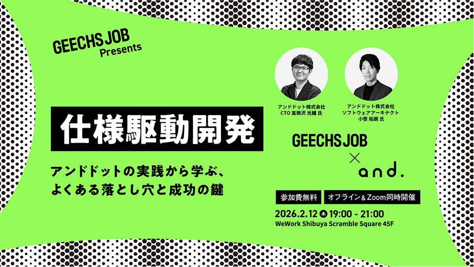 「仕様駆動開発」をテーマに、生成AI技術の普及に取り組むアンドドット株式会社から、CTOの高根沢 光輔氏とソフトウェアアーキテクトの小笹 拓朗氏にご登壇いただきます。